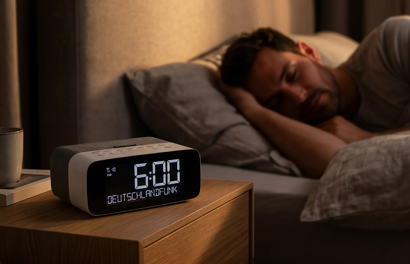 Four individually adjustable alarm times – perfectly tailored to your rhythm: once, daily, weekdays or weekends. A sleep timer from 15 to 90 minutes gently accompanies you to sleep. Wake up with radio (DAB+/FM) or a classic alarm tone.