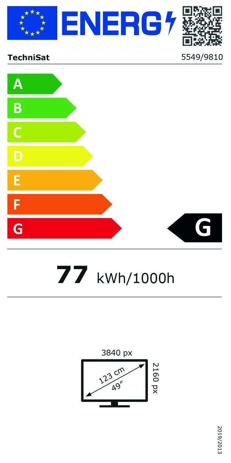 | Energy Efficiency Class for standard Dynamic Range (SDR) | G |